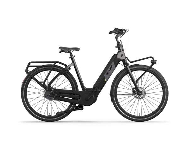 Cortina elektrische Unisex-fiets Common Family Integrated in framemaat 50cm, kleur: Jet Black Gloss. Uitgerust met achter een traploze Enviolo Automatic naaf, hydraulische schijfremmen voor en achter, Bosch ActiveLine Plus Smart systeem met middenmotor, wordt geleverd ZONDER accu en acculader. Opvallende details: aluminium frame, in frame geïntegreerde accu en voordrager met het MIK-systeem. Vergeet niet om op samenstellen te drukken en de bijbehorende adapter, accu en lader ook te selecteren.