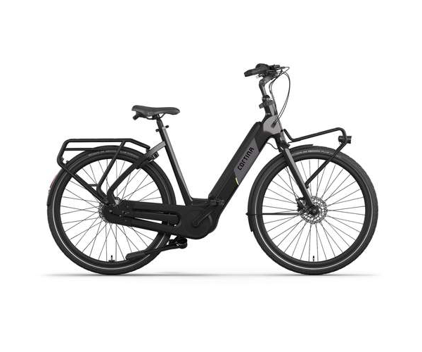 Cortina elektrische Unisex-fiets Common Family Integrated in framemaat 50cm, kleur: Jett Black Gloss. Uitgerust met achter een traploze Enviolo Urban naaf, hydraulische schijfremmen voor en achter, Bosch ActiveLine Plus Smart systeem met middenmotor, wordt geleverd ZONDER accu en acculader. Opvallende details: aluminium frame, in frame geïntegreerde accu en MIK-HD in de achterdrager en in de voordrager met het MIK-systeem. Vergeet niet om op samenstellen te drukken en de bijbehorende adapter, accu en lader ook te selecteren.