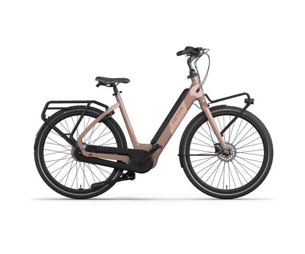 Cortina elektrische Unisex-fiets Common Family Integrated in framemaat 50cm, kleur: Mocha Mousse Gloss. Uitgerust met achter een traploze Enviolo Urban naaf, hydraulische schijfremmen voor en achter, Bosch ActiveLine Plus Smart systeem met middenmotor, wordt geleverd ZONDER accu en acculader. Opvallende details: aluminium frame, in frame geïntegreerde accu en MIK-HD in de achterdrager en in de voordrager met het MIK-systeem. Vergeet niet om op samenstellen te drukken en de bijbehorende adapter, accu en lader ook te selecteren.