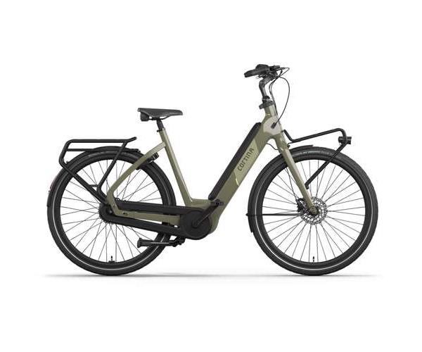 Cortina elektrische Unisex-fiets Common Integrated in framemaat 50cm, kleur: Moss Green Gloss. Uitgerust met een Shimano Nexus 7 versnellingsnaaf, hydraulische schijfremmen voor en achter, Bosch ActiveLine Plus systeem met middenmotor, wordt geleverd ZONDER accu en acculader. Opvallende details: aluminium frame, in frame geïntegreerde accu en MIK-HD in de achterdrager en in de voordrager met het MIK-systeem. Vergeet niet om op samenstellen te drukken en de bijbehorende adapter, accu en lader ook te selecteren.
