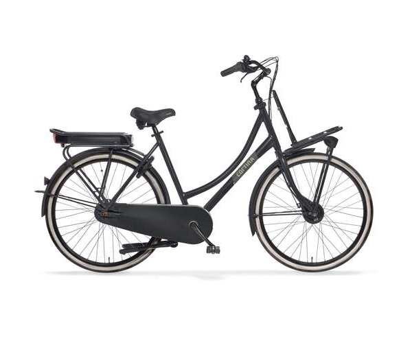 Cortina elektrische fiets Transport U4 Family in framemaat 50cm, Jet Black Matte. Uitgerust met achter een Shimano Nexus 7 versnellingsnaaf, hydraulische schijfrem voor en achter, Ecomo 36v systeem met voorwielmotor, wordt geleverd ZONDER accu en acculader.
