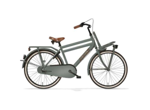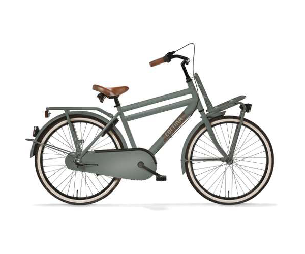 Cortina Transport U4 Mini jongensfiets in framemaat 24inch. Kleur: Muted Sage Matte. Uitgerust met achter een Shimano Nexus 3-traps versnellingsnaaf met terugtraprem en voor een standaard naaf. Opvallende details: voordrager.